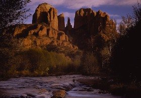 On another evening, I went looking for a new sunset spot. I like the airport one, but it's always crowed and everybody has to stand. I'm 5 feet tall, so this isn't so good for me. I'd heard about Red Rock Crossing picnic area, which is now called Crescent Moon.. so I finally went there and found the best sunset view ever. It was less crowed and I found a place to sit and admire Cathedral Rock changing color and the reflection in the creek, it was just so amazing.